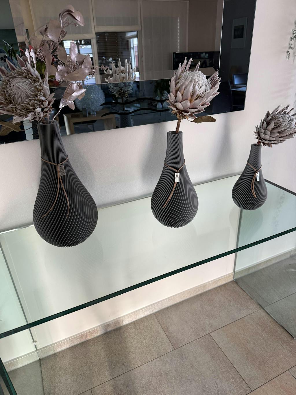 - Das 3er Set enthält die Vase Twist in den Höhen 24 cm, 32 cm und 38 cm.