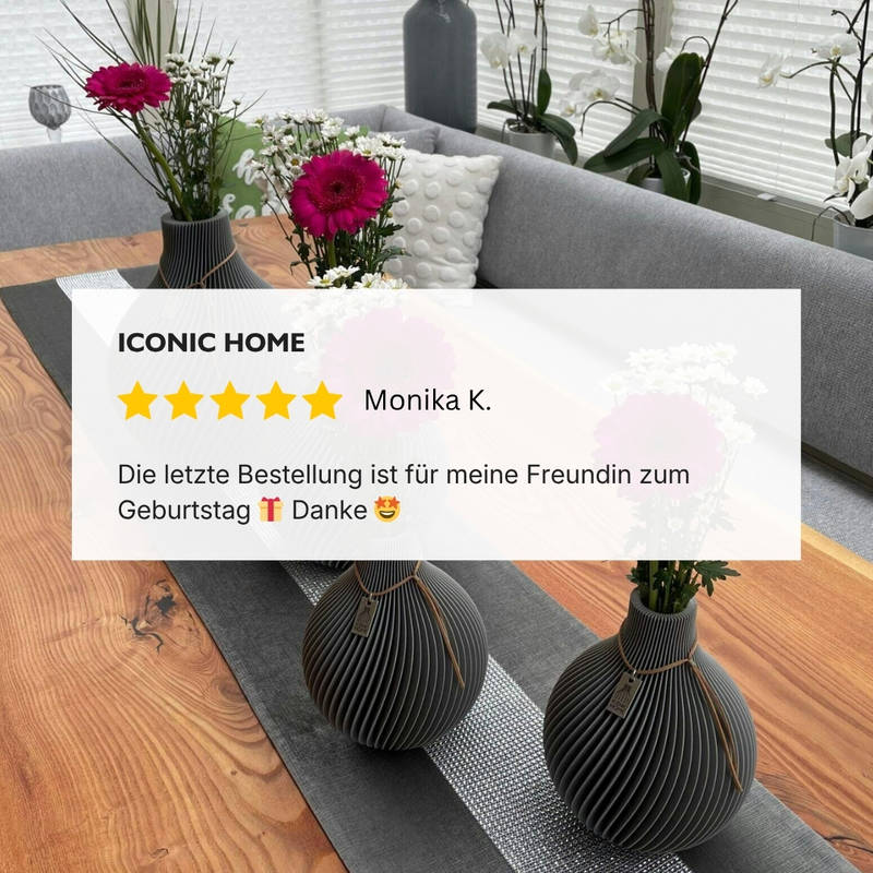 Los jarrones impresos en 3D de ICONIC HOME vienen en una bolsa de regalo de alta calidad – no necesitas envolverlos tú mismo.