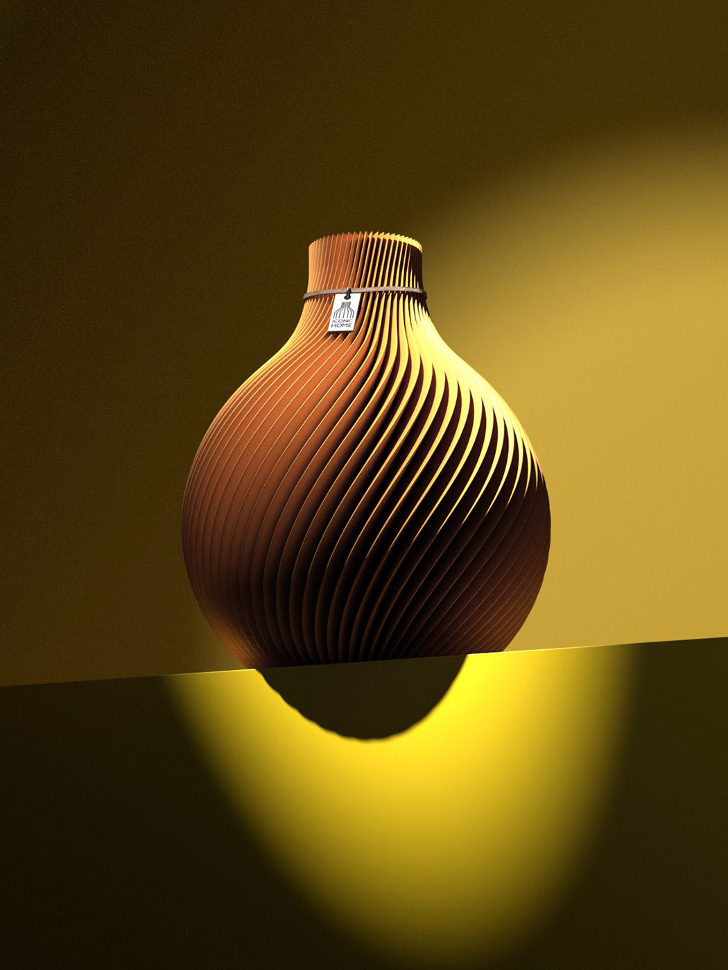 Natural y original: El color Natural Oak recuerda a la cálida madera de roble. Su tono marrón claro con un toque amarillento hace que los jarrones parezcan esculturas de madera finamente talladas.