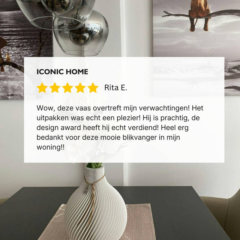 Wauw, deze vaas overtreft mijn verwachtingen! Het uitpakken was een waar genoegen! Hij is prachtig en heeft terecht de Design Award gewonnen! Heel erg bedankt voor deze prachtige blikvanger in mijn huis!